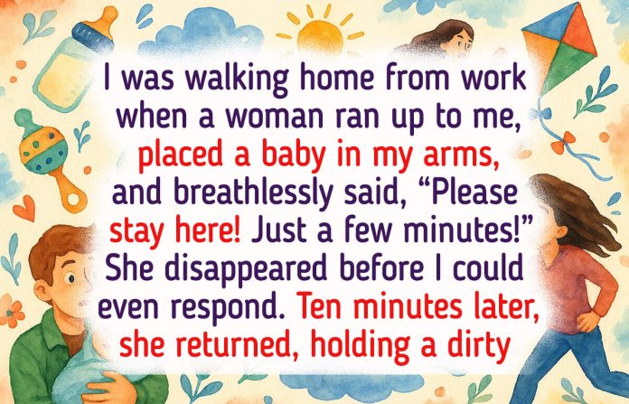 “I’m so sorry!” she said. “It was stuck under a car. I couldn’t leave him, but I couldn’t carry both.” I laughed nervously, “You handed your baby to a stranger.” She smiled, “You didn’t look like the type who’d run.” That made me feel oddly proud. We sat on a nearby bench and talked for a bit. She was a single mom, and I ended up walking them home.