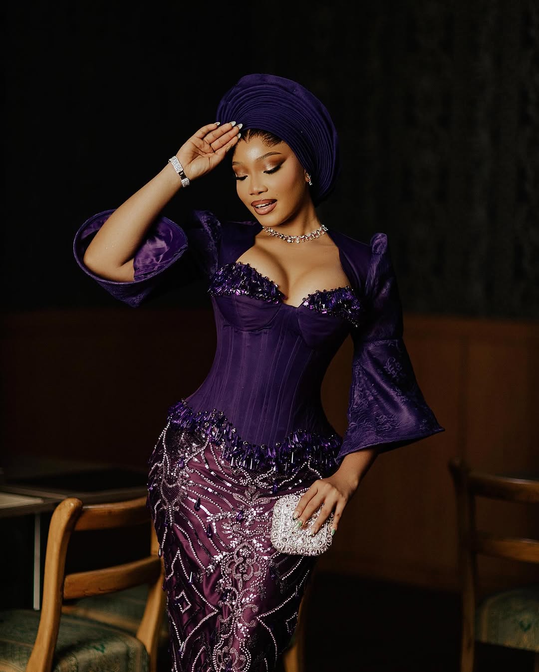 This purple stunner by RM Couture is serving regal tradition with a recent twist. From the structured corset bodice adorned with intricate elaborations to the sleeves that add drama, this outfit is an entire assertion. Paired with this well-styled gele, it brings a refined end that’s exhausting to disregard. To high all of it off, Magnificence by Zeeh got here by means of with this alluring glam and its flawlessness is drool-worthy. In case you are a bride seeking to radiate effortlessly, this look is for you. You can even discover extra magnificence seems right here.