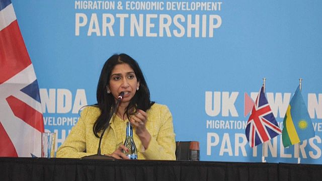 Suella Braverman spoke to journalists at a information convention attended by Rwanda’s Overseas Minister Vincent Biruta, who additionally defended the settlement signed between the 2 international locations.