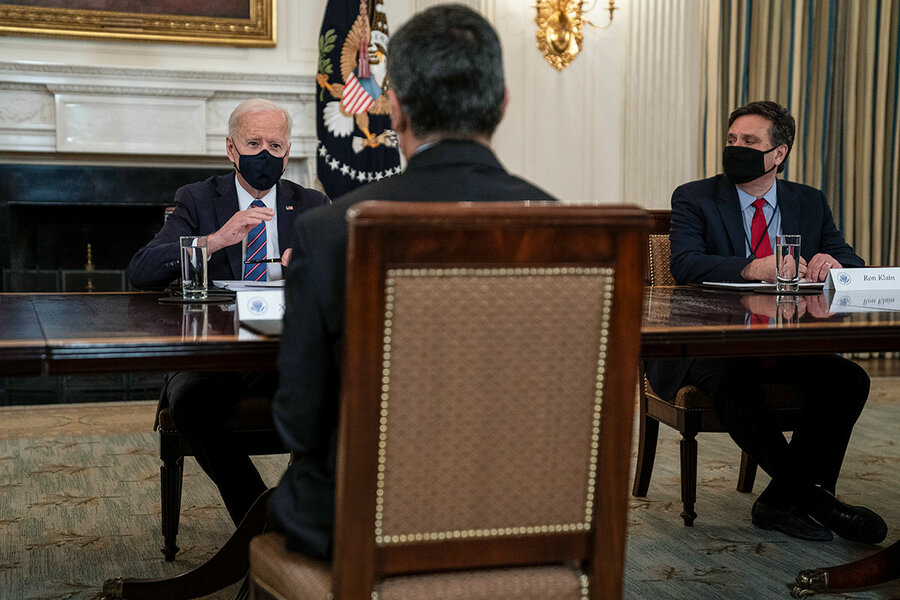 White Dwelling chief of workers Ron Klain (excellent) and Health and Human Products and services Secretary Xavier Becerra hear as President Joe Biden speaks all the blueprint thru a assembly within the Teach Dining Room of the White Dwelling, March 24, 2021, in Washington. Mr. Klain has performed a key role in helping Mr. Biden obtain federal judgeships.
