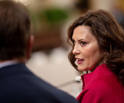 Michigan Gov. Gretchen Whitmer on Friday said that an attack earlier this week on a West Bloomfield temple was “anti-Semitism — plain and simple.” File Photo by Andrew Harrer/UPI | License Photo