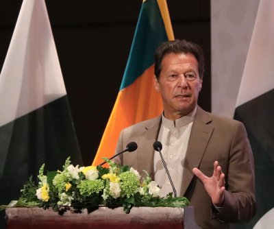Pakistan’s former Prime Minister Imran Khan, pictured in 2021, and his wife have been sentenced to 17 years in prison for corruption. File Photo by Chamila Karunarathne/EPA-EFE