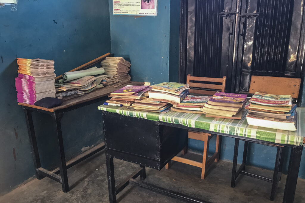 School books are displayed on a table in a classroom at St. Mary’s Catholic School in Papiri, Agwarra local government, Niger state, on November 23, 2025. Photo by IFEANYI IMMANUEL BAKWENYE / AFP