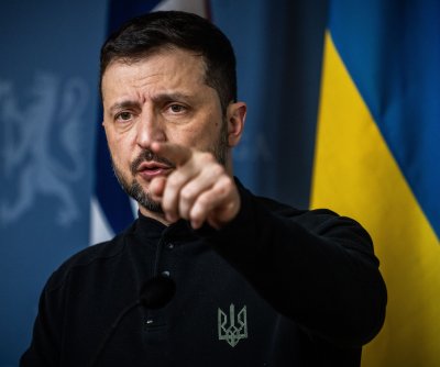 Ukrainian President Volodymyr Zelensky attends a press convention in Oslo, Norway, on March 20. File Photograph by Ole Berg-Rusten/EPA-EFE